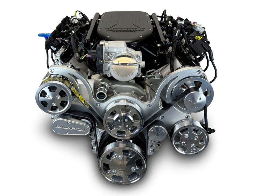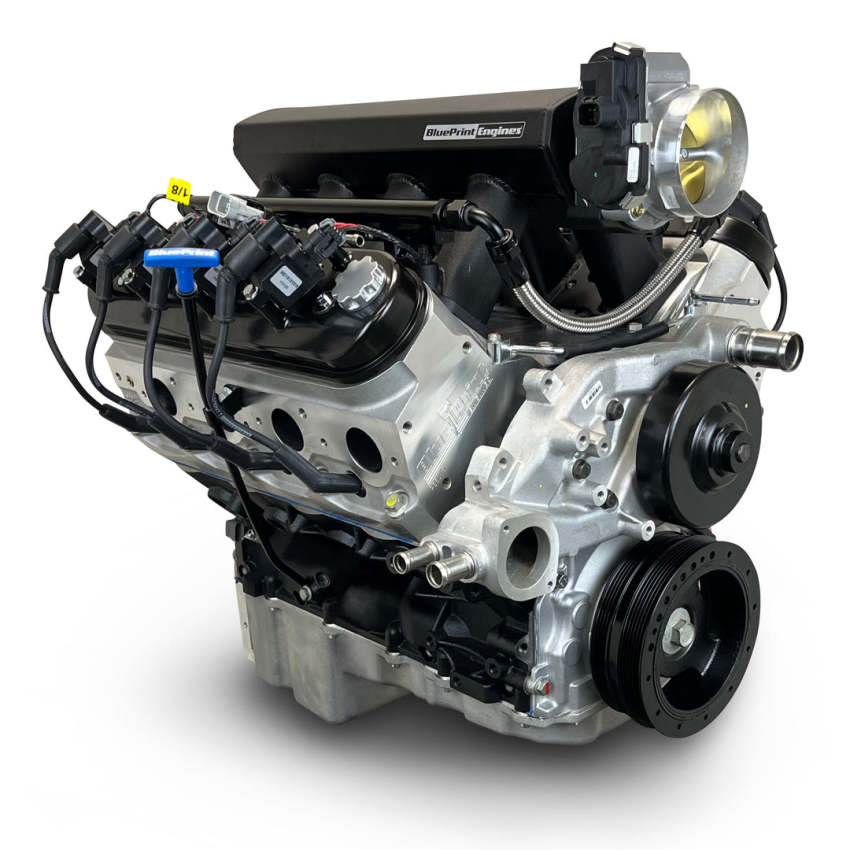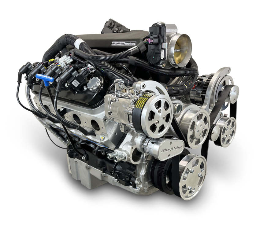 GM LS Compatible 376 c.i. Pro Series Engine - 525 Horsepower - Deluxe Dressed - Polished Pulley Kit - BluePrint Engines Calibrated ECU