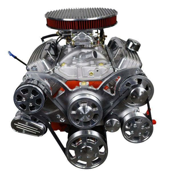 GM Small Block Compatible 383 c.i. Low Profile Engine - 436 Horsepower - Deluxe Dressed - Polished Pulley Kit - Carbureted